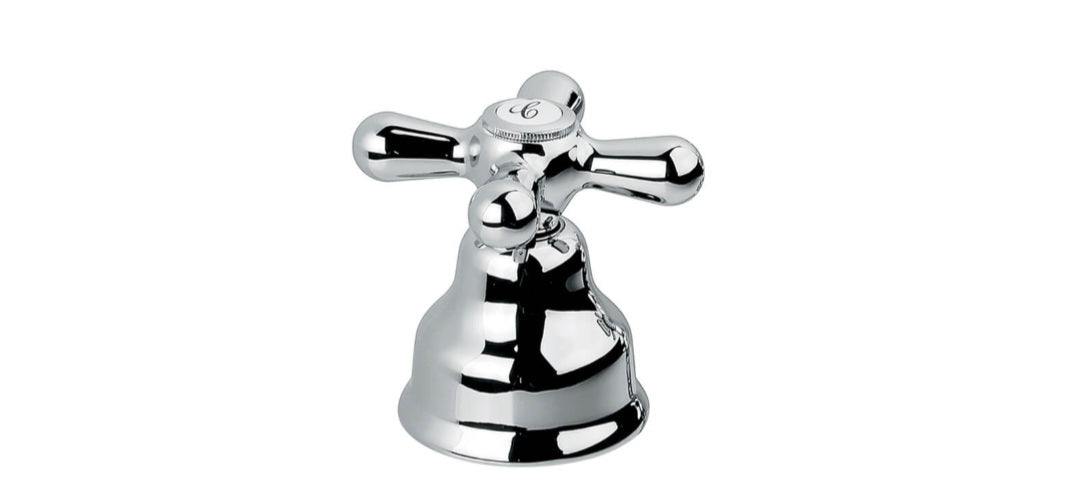 MANIGLIA A CROCE CON CAMPANA SOTTOMANIGLIA CROMATA PER RUBINETTERIA 3FORI SERIE DECO' O STELLA MARCA EMMEVI (SOLO PARTI ESTERNE NO VITONE E CORPO RUBINETTO)